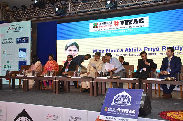 During his inaugural speech Mr. Naidu elaborated the tourism potential of Andhra Pradesh and steps taken by the Govt. to attract tourists from all over the country to see the Heritage sites, wild life, devine destinations, Beaches, nature discovery, adventure and hills & valleys. Also spoke about the new tourist destinations being developed for the people to come and experience Andhra Pradesh. He also promised to make Vizag as one of the most important tourist destinations among other five in the State. Vizag which is often compared as Goa of the East has long beaches, many attractive places including Araku Valley and borra caves for tourists. Andhra Pradesh was the Host State for the Convention