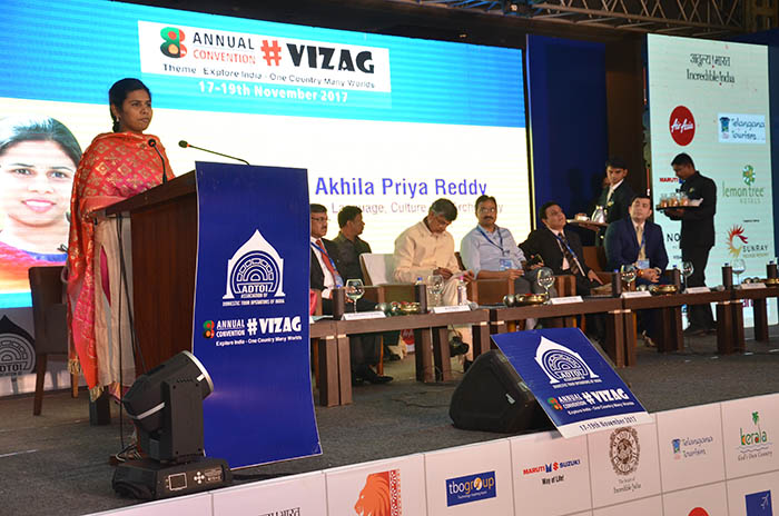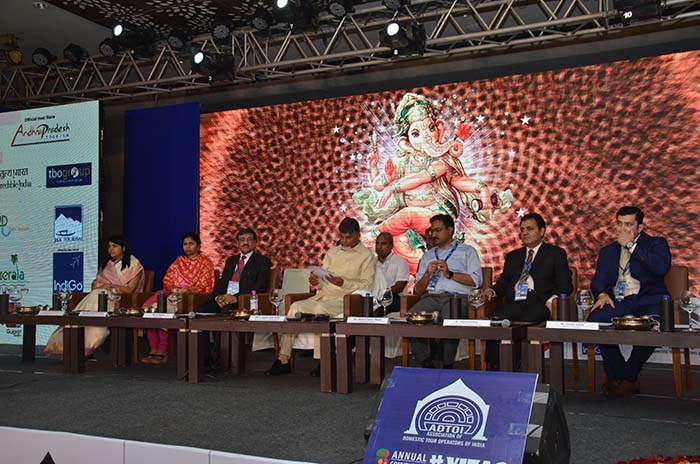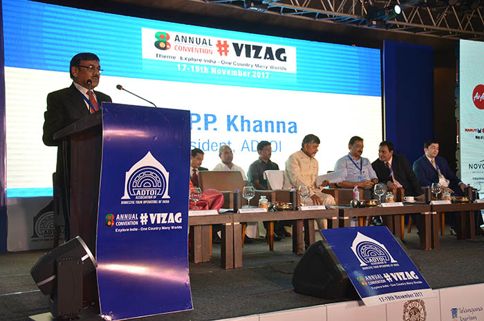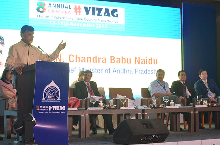 Eighth Annual Convention-cum-Exhibition of Association of Domestic Tour Operators of India (ADTOI) was inaugurated by the Hon’ble Chief Minister of Andhra Pradesh, Mr. N. Chandrababu Naidu in the presence of other dignitaries Ms. Bhuma Akhila Priya Reddy, Hon’ble Minister of Tourism, Mr. Mukesh Kumar Meena, Secretary Tourism, Mr. Himanshu Shukla, MD, Andhra Pradesh Tourism Development Corporation Ltd., Govt. of Andhra Pradesh and Ms. Aashima Mehrotra, Director, Ministry of Tourism, Govt. of India, in a colourful ceremony held on 17th November 2017 evening before a packed audience at Novotel, Varun Beach, Visakhapatanam, Andhra Pradesh. The theme of the Convention was DOMESTIC TOURISM: Explore India – One country, Many worlds.